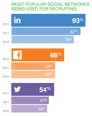 De hecho, el informe apunta que el 73% de los entrevistados han contratado candidatos que habían identificado o conocido a través de las redes sociales. Esto supone un incremento de 1o puntos con respecto al año 2011 y supone una clara tendencia en el modo de contratación de profesionales.